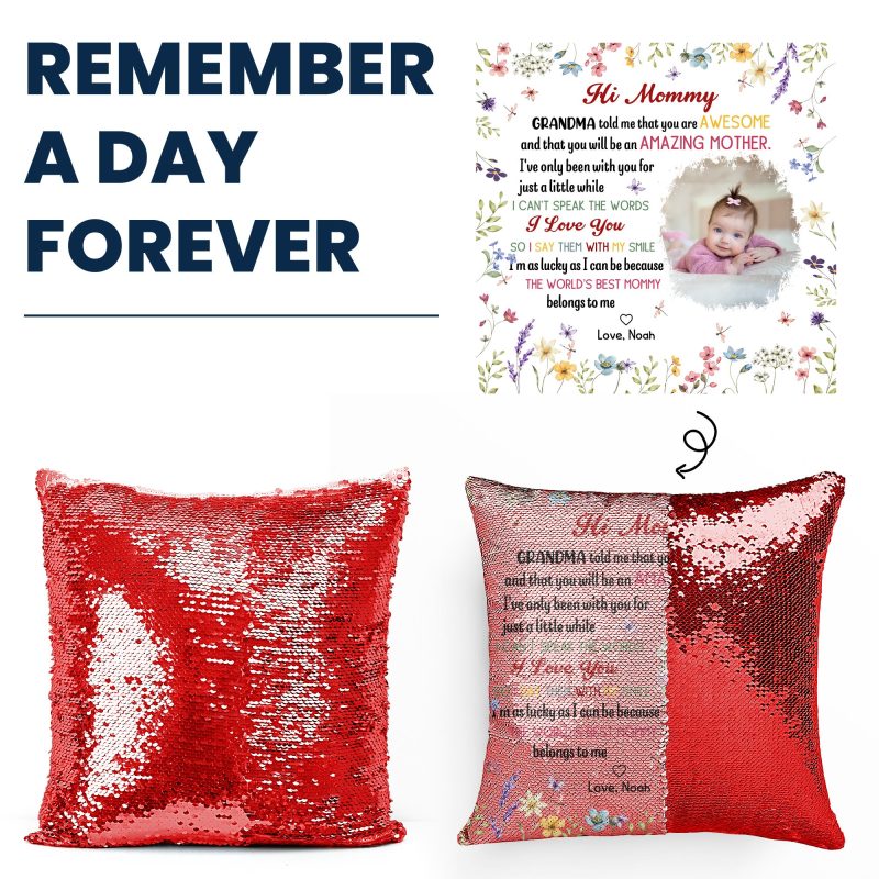 The Best Mommy Belongs To Me First Mom New Mom Gift – Custom Photo Sequin Pillow