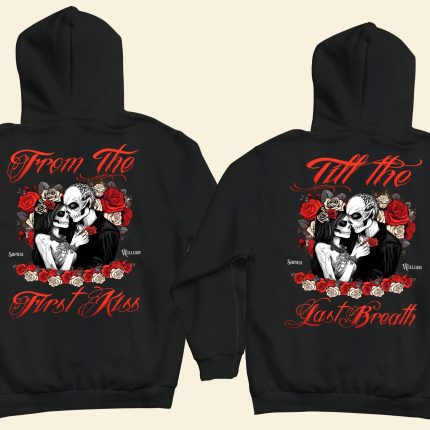 From The First Kiss Till The Last Breath – Personalized Matching Couple Back Printed Hoodies